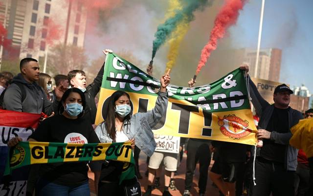 Hundreds of manchester united supporters stormed the pitch at old trafford ahead of their game against liverpool in protest at the club's american owners, the glazer family.